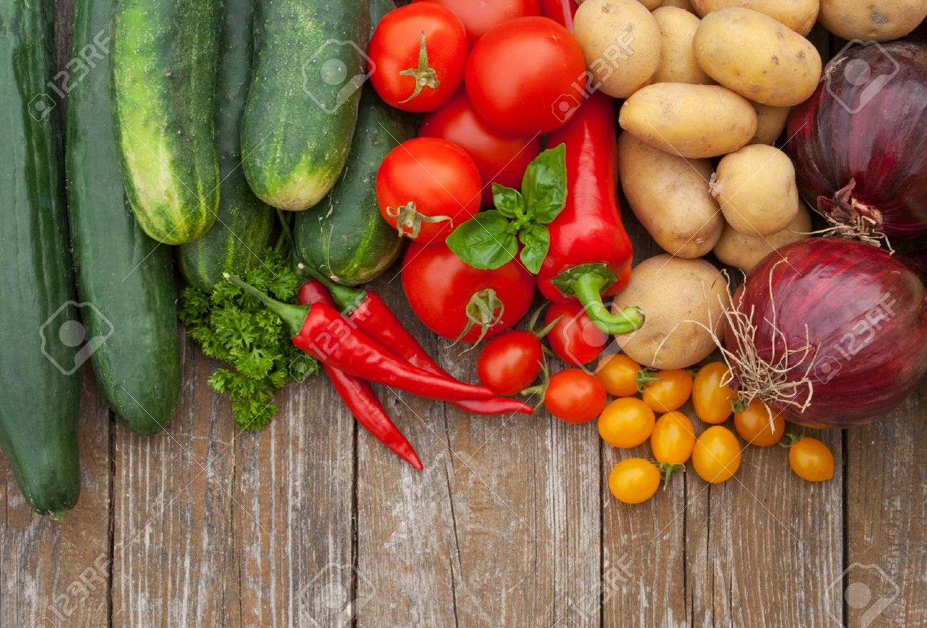 View Full Border With Vegetables And Wooden Background Stock Photo Picture