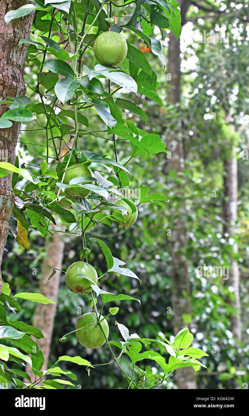 View Full                    Ripening Passion Fruits Passiflora Hanging From Vine In A